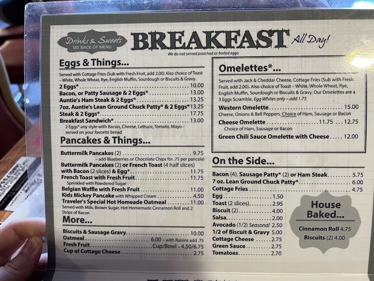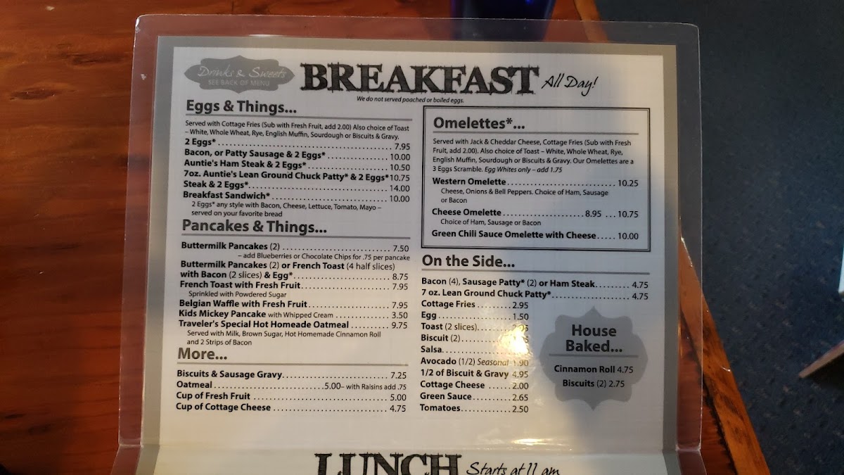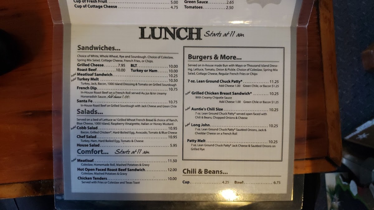 Welcome to Aunt Nancy's Family Restaurant, where hearty meals and warm smiles await you at 21 N 9th St, Show Low, AZ 85901. Our menu is a delightful blend of comfort food favorites designed to satisfy every craving. Start your day right with our fluffy Biscuits and Gravy or indulge in a sweet treat with our mouthwatering Cinnamon Rolls. Try Auntie’s Ham Steak & 2 Eggs or the classic Chicken Fried Steak and Eggs for breakfast that truly hits the spot. For lunch or dinner, savor the savory Roast Beef or the irresistible French Dip Sandwich. Don't forget to save room for dessert – our Apple Pie with Ice Cream is the perfect way to end your meal! Whether you're enjoying Blueberry Pancakes or our hearty Western Omelette, there's something for everyone at Aunt Nancy's. Join us today and make mealtime a cherished family experience!